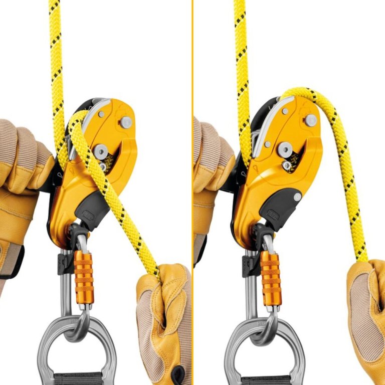 Le système AUTO-LOCK facilite le positionnement au poste de travail. Dès que la poignée est relâchée, la corde est automatiquement bloquée dans l’appareil, ce qui permet de se stabiliser sans avoir à réaliser de clé d’arrêt. Cette fonction améliore la sécurité et simplifie les manipulations lors des interventions sur corde.