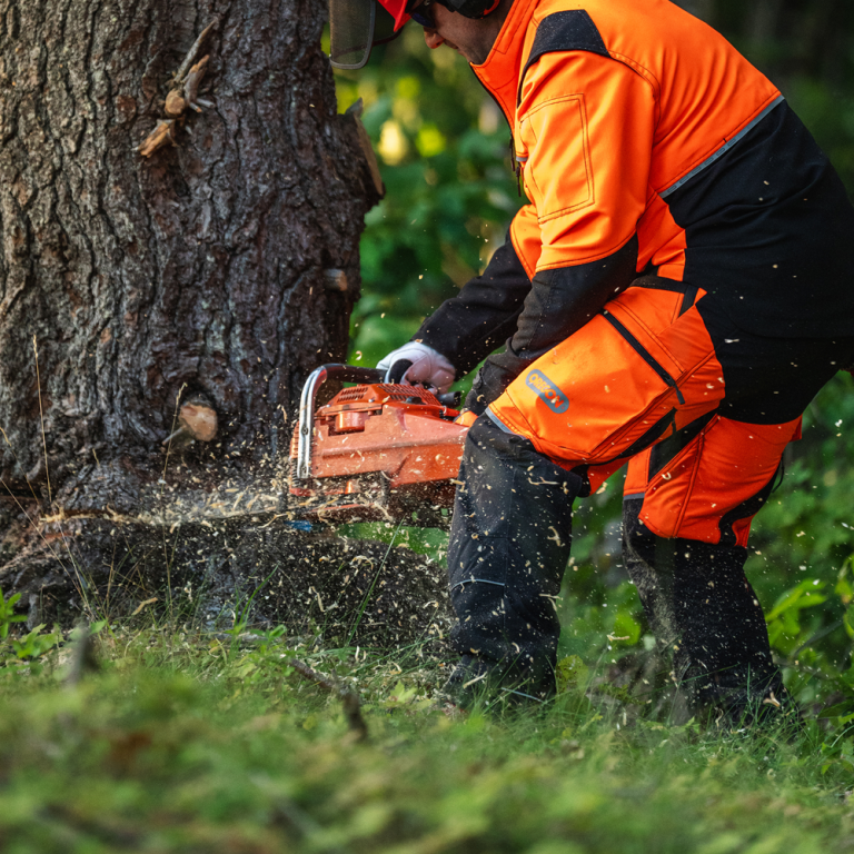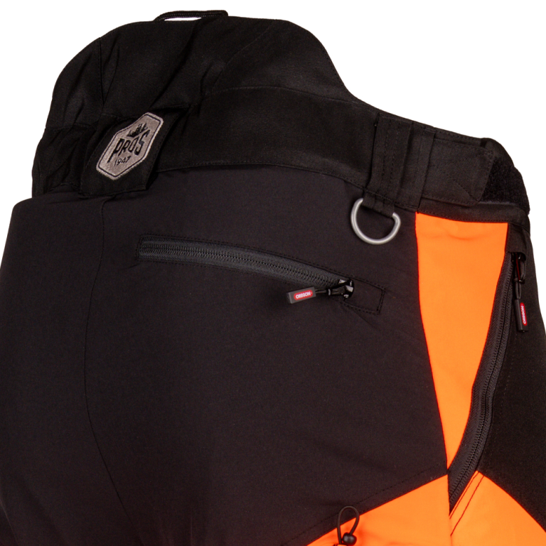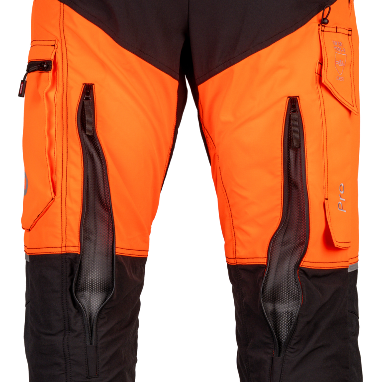 Mise en contexte du pantalon de protection anticoupure de classe 1 Protect Pro orange & noir de Oreg