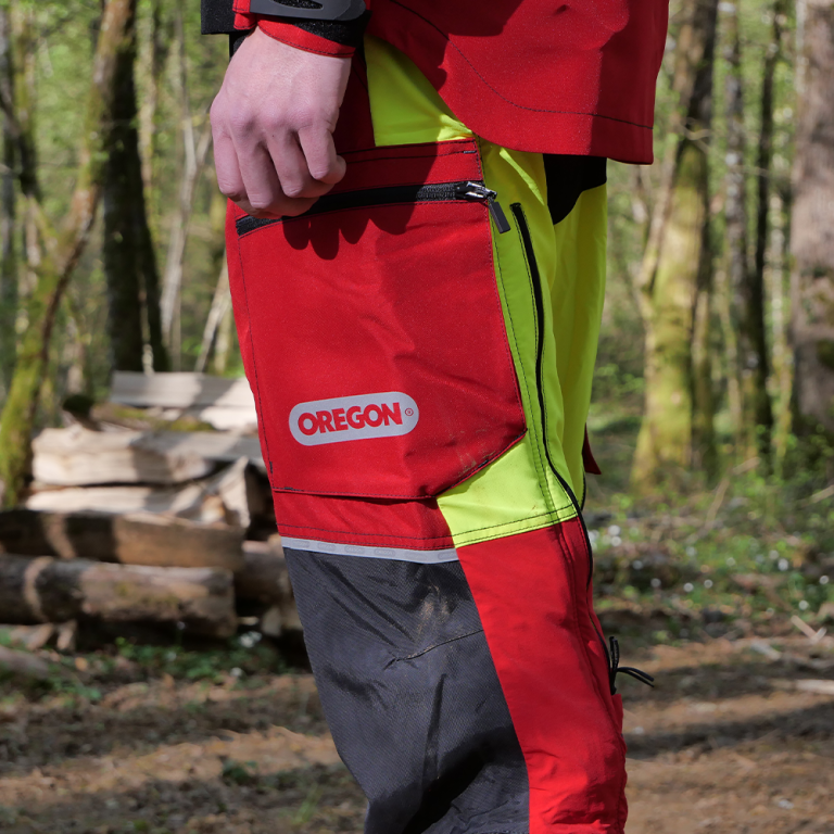 Caractéristiques du pantalon anticoupure rouge & jaune Protect Pro de Oregon